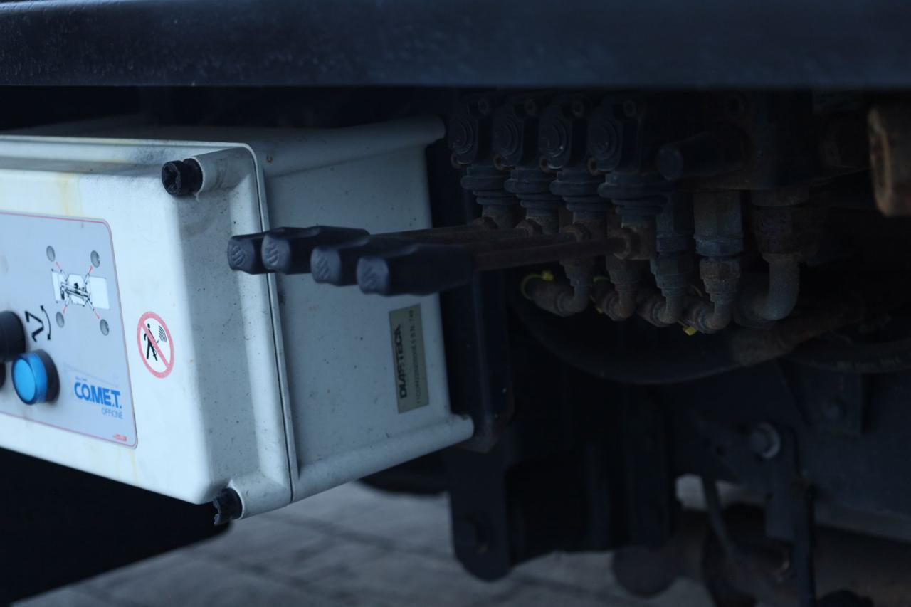 Stabilizzatori: 4 puntoni idraulici verticali con sistema “100% SAFE” (interblocco braccio‑stabilizzatori).