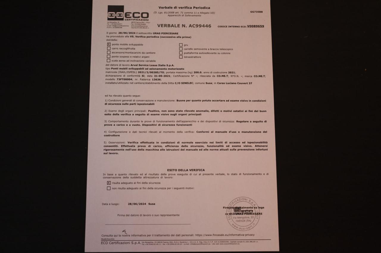 PORTATA CESTELLO: 200 KG (2 OPERATORI).